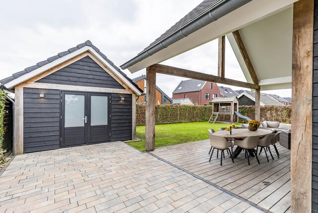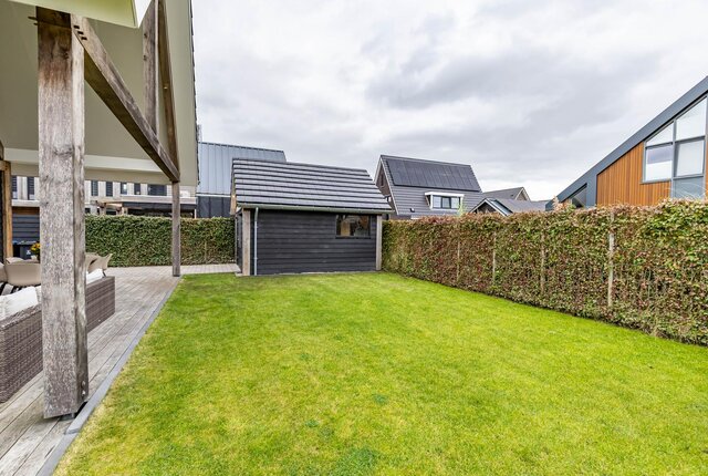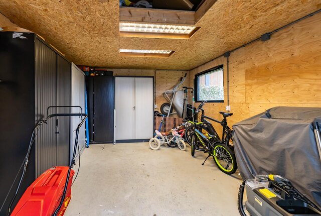 De tuin is gunstig gelegen op het zuidwesten, zodat je de hele dag kunt genieten van de zon. Daarnaast is er nog een ruime vrijstaande houten berging van 19 m², volledig geïsoleerd, perfect voor extra opbergruimte of eventuele werkruimte.