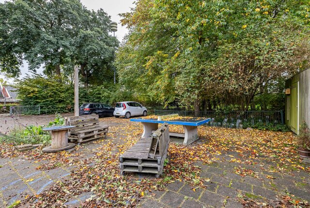 De buitenruimte bestaat uit een voormalig schoolplein en een fietsenstalling (open en gesloten) en het terrein is geschikt om meerdere auto's te parkeren, maar kan ook zeker als tuin ingericht worden.