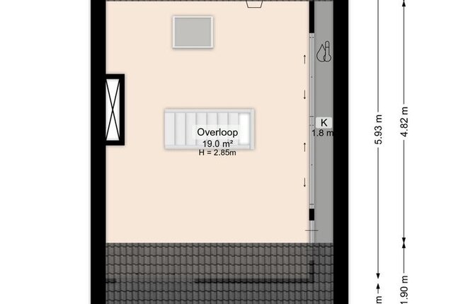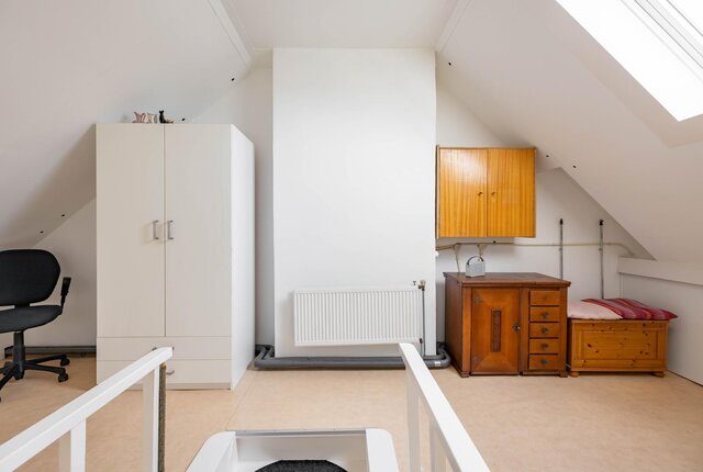 Een vaste trap leidt naar de derde verdieping. Deze is 19 m² groot en kan worden gebruikt als hobbyruimte, opslagruimte of eventueel als extra slaapkamer.
