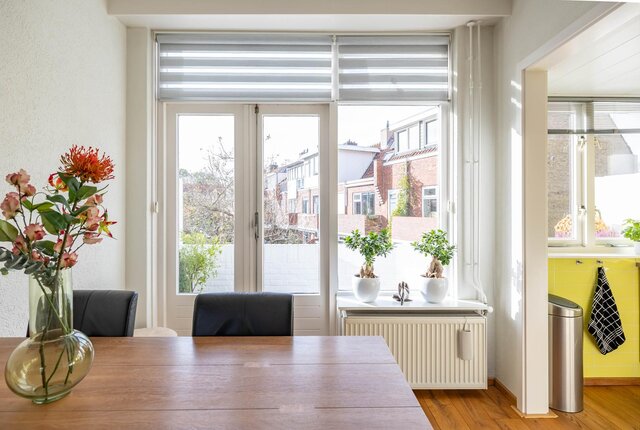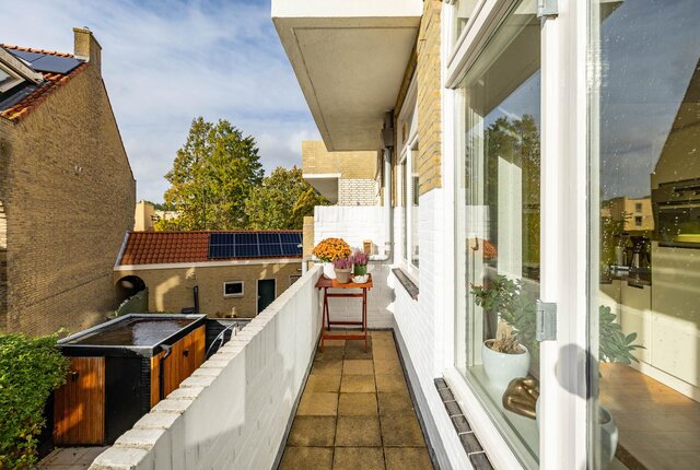 Aan de achterzijde heb je middels openslaande deuren toegang tot het balkon van ca. 4 m². Het balkon is gelegen op het westen waardoor je hier 's avonds nog heerlijk van het zonnetje geniet.