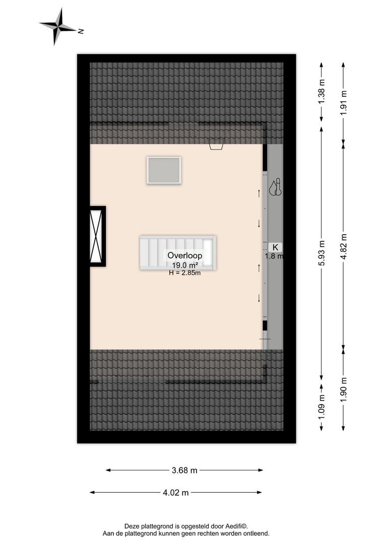 Een vaste trap leidt naar de derde verdieping. Deze is 19 m² groot en kan worden gebruikt als hobbyruimte, opslagruimte of eventueel als extra slaapkamer.