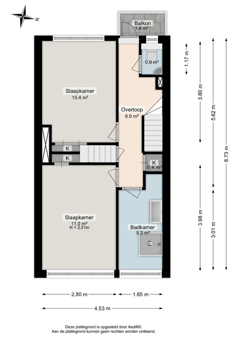 Op de tweede verdieping bevinden zich twee slaapkamers van ca. 11 en 10 m². Beide kamers zijn voorzien van praktische inbouwkasten. Aan de voorzijde is de nette badkamer van 5m² met douche en wastafel te vinden. Er is op deze verdieping ook een separaat toilet voorzien van wandcloset en fonteintje. Op deze verdieping is ook nog een tweede balkon aanwezig.