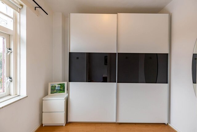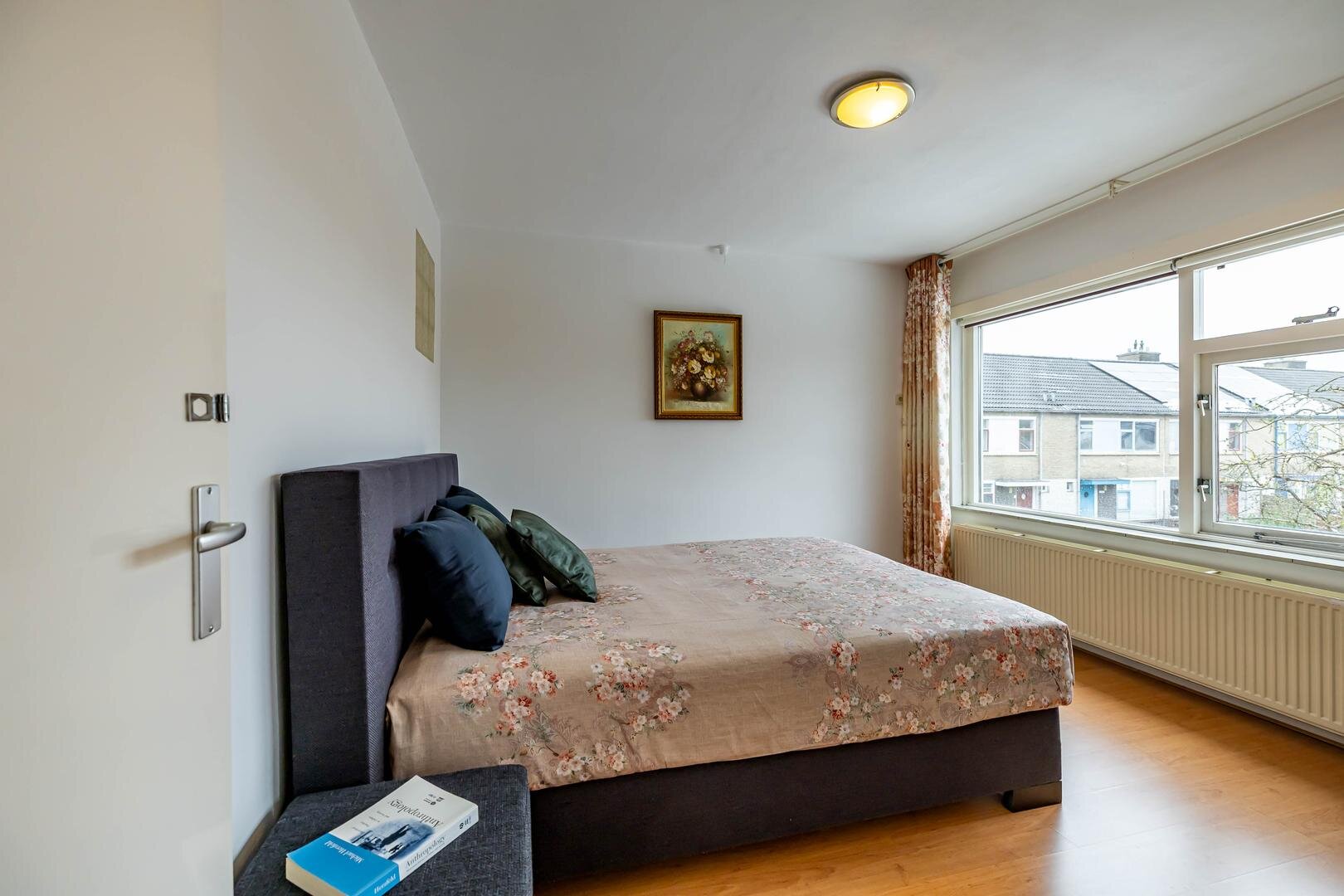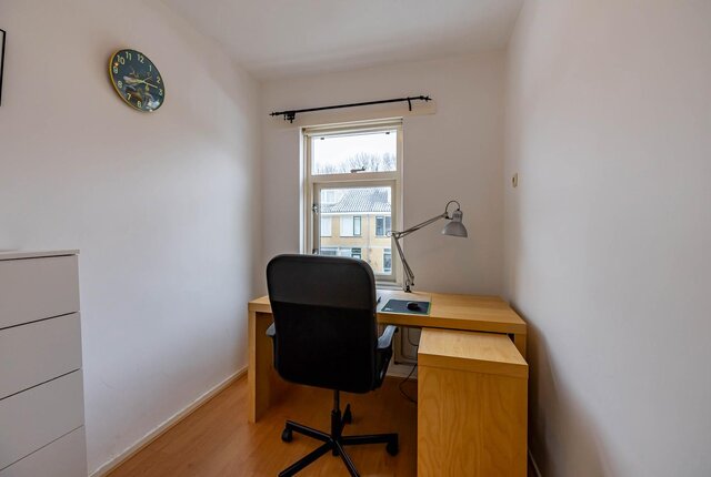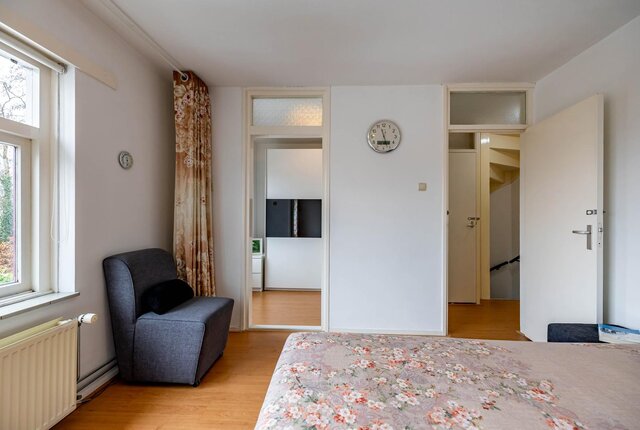 Hier is een overloop met handige bergkast, er zijn drie slaapkamers (voorheen vier), allen met een nette laminaatvloer en wandafwerking. De grootste slaapkamer aan de voorzijde bestaat uit twee samengevoegde slaapkamers en meet nu ca. 18 m². De tweede slaapkamer aan de achterzijde meet ca. 12 m² en er is een kleinere slaapkamer van ca. 5 m² en is ideaal als rustige werkkamer of kinderkamertje.