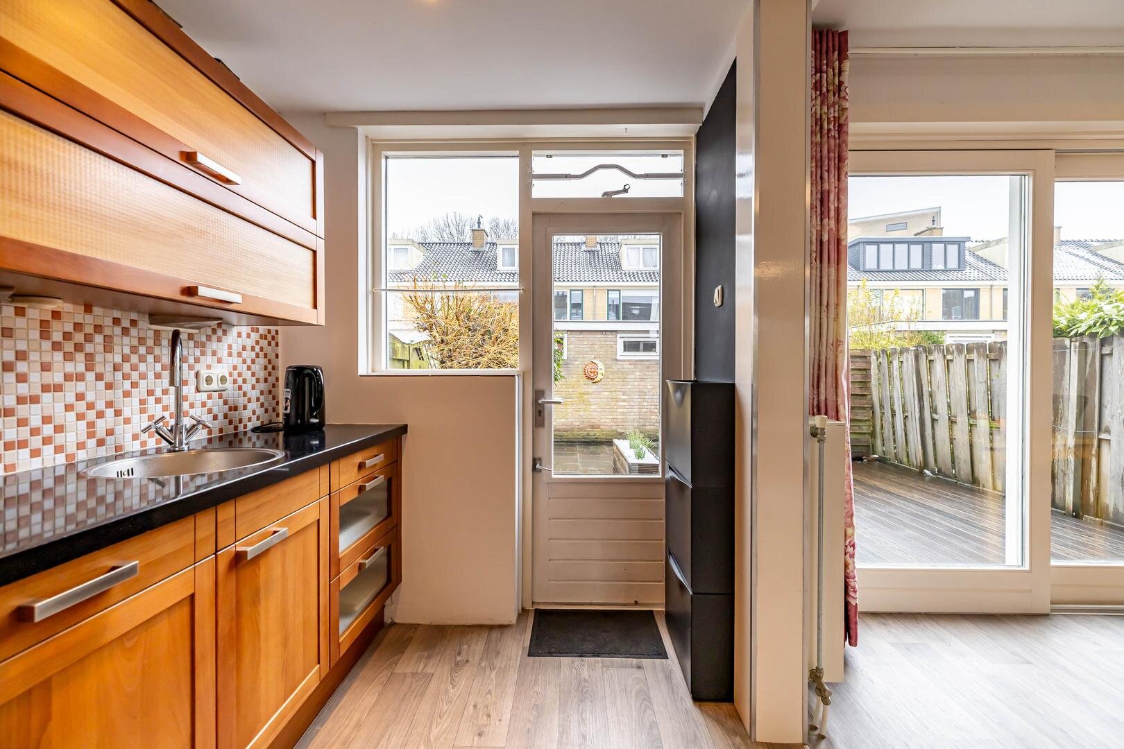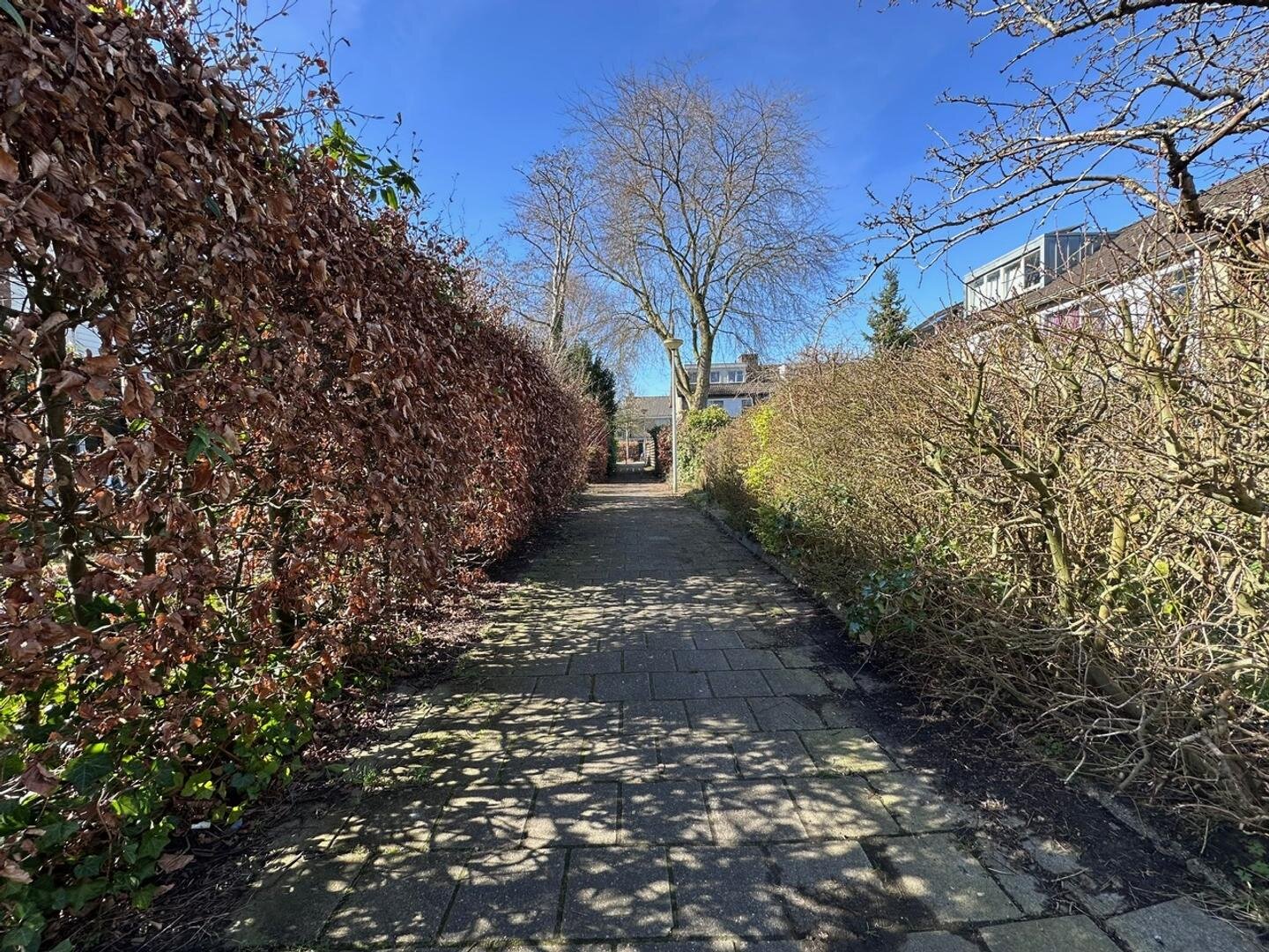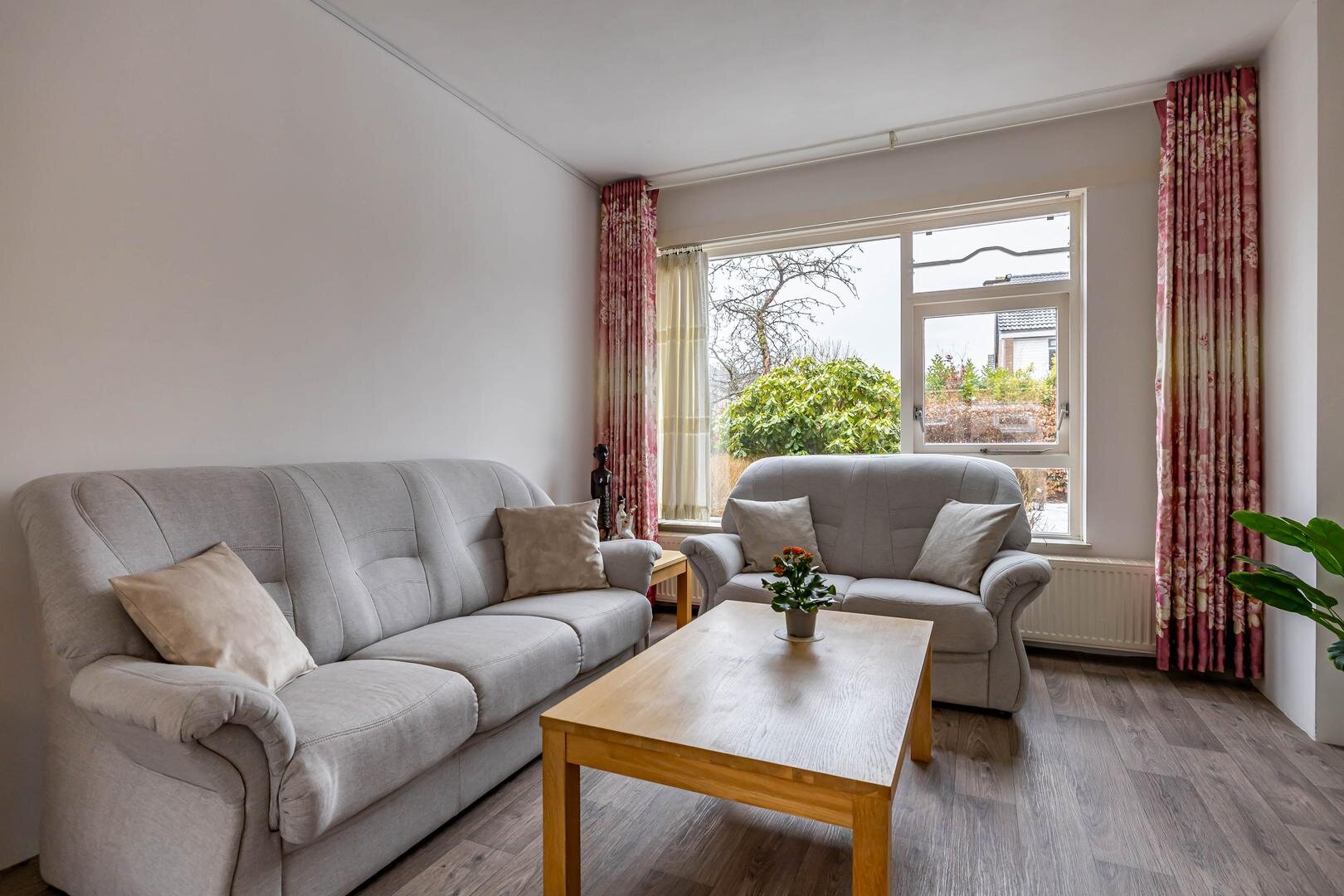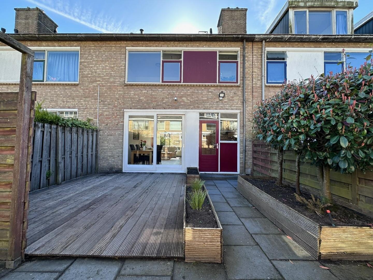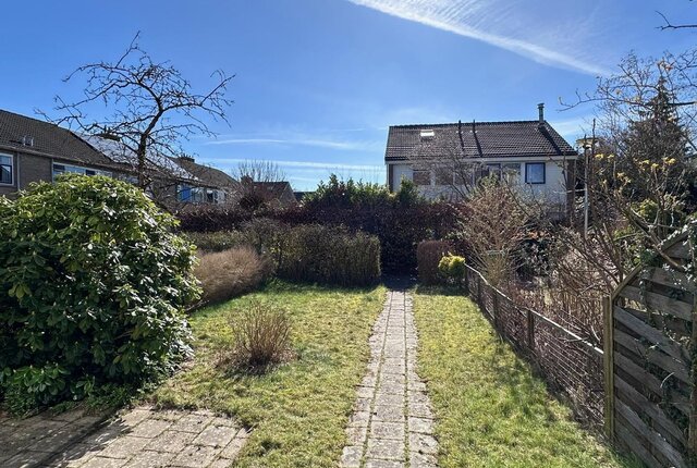 Middels de tuindeur en ook via de grote schuifpui is de keurig aangelegde achtertuin te bereiken.