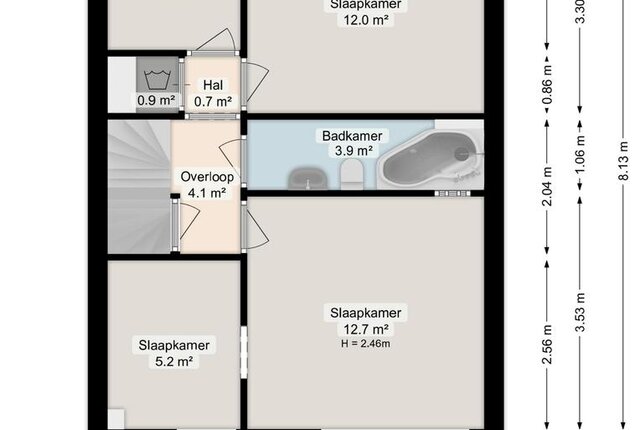 Met een vaste trap is deze volwaardige verdieping goed toegankelijk.