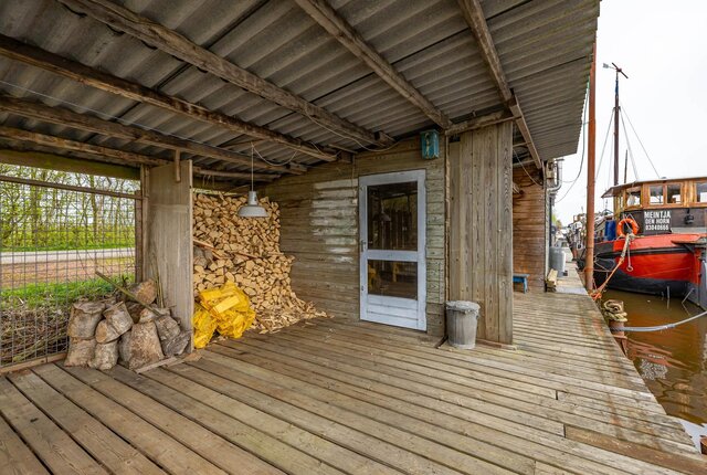 De ligplaats is circa 26 meter lang. Op de wal is een grote houten schuur aanwezig, een terras/steiger en een eigen plek om te parkeren.