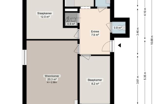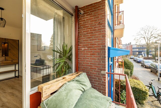 De tweede slaapkamer is een fraaie lichte slaapkamer van ruim 8 m² met een deur naar het balkon aan de voorzijde. Ideaal als logeer- of werkkamer.
