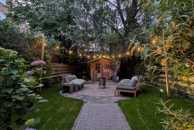 - Zeer royale achtertuin met zonneterras en tuinhuis;
