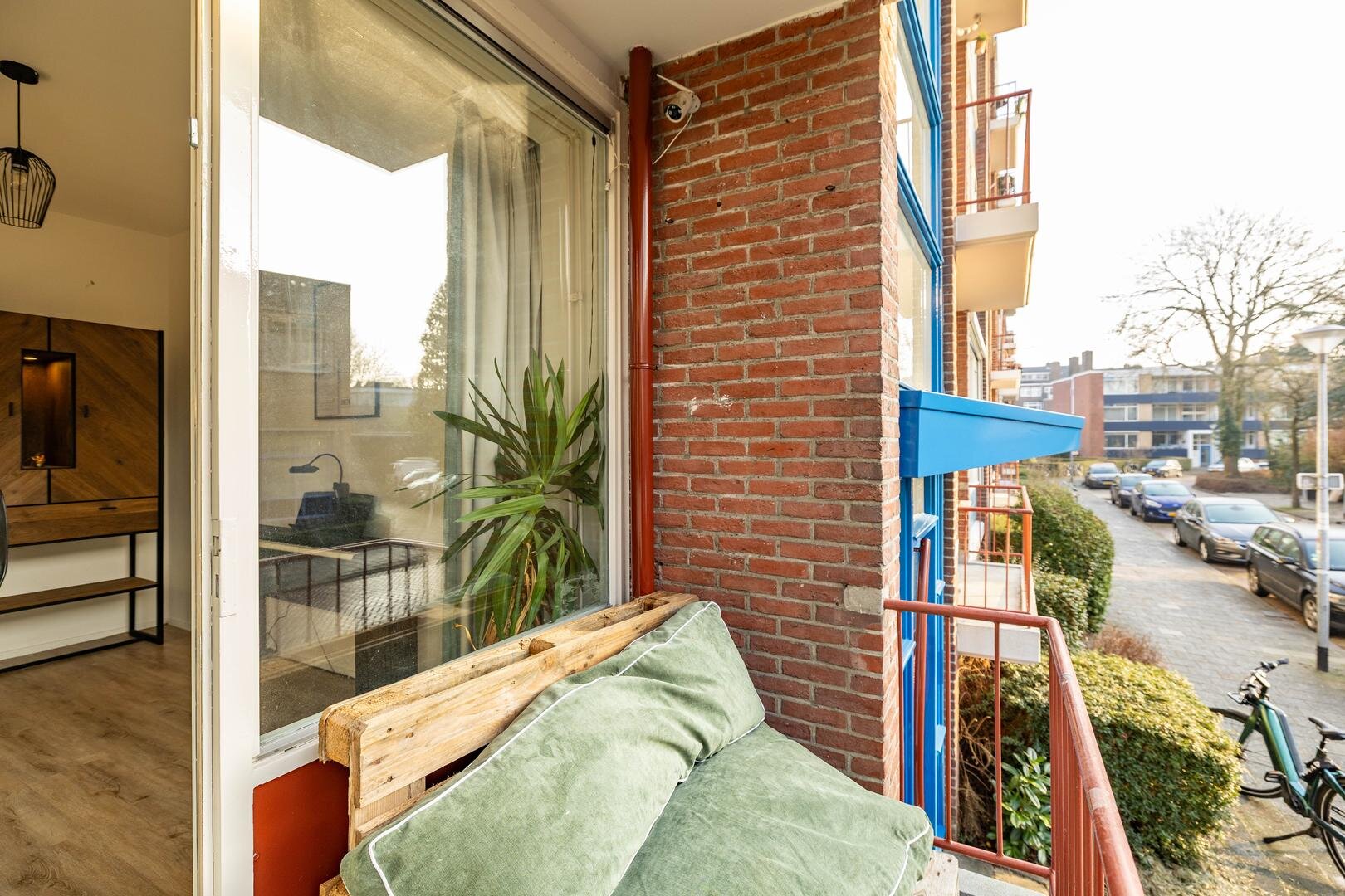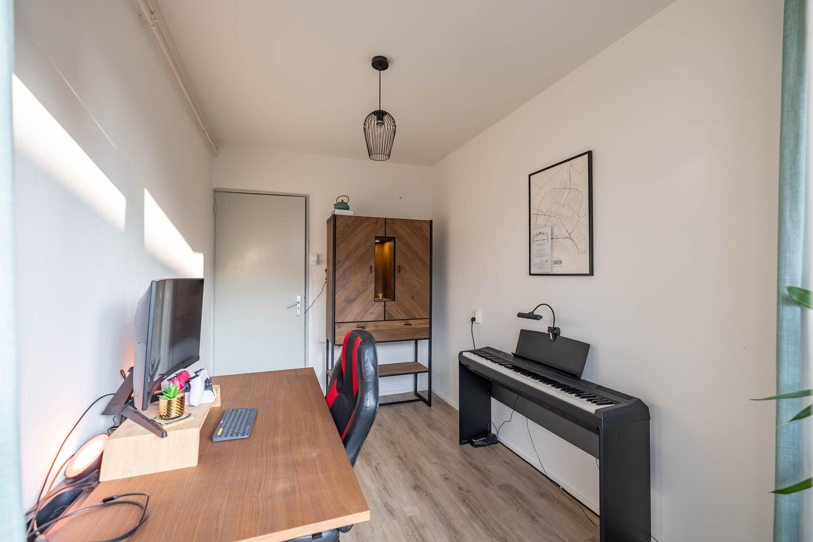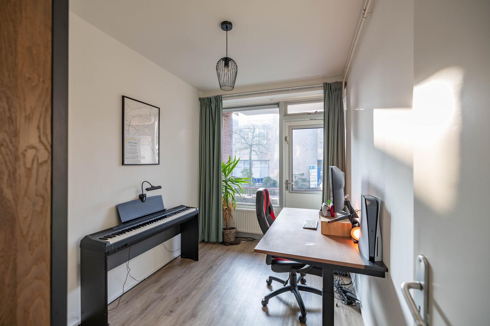 De tweede slaapkamer is een fraaie lichte slaapkamer van ruim 8 m² met een deur naar het balkon aan de voorzijde. Ideaal als logeer- of werkkamer.