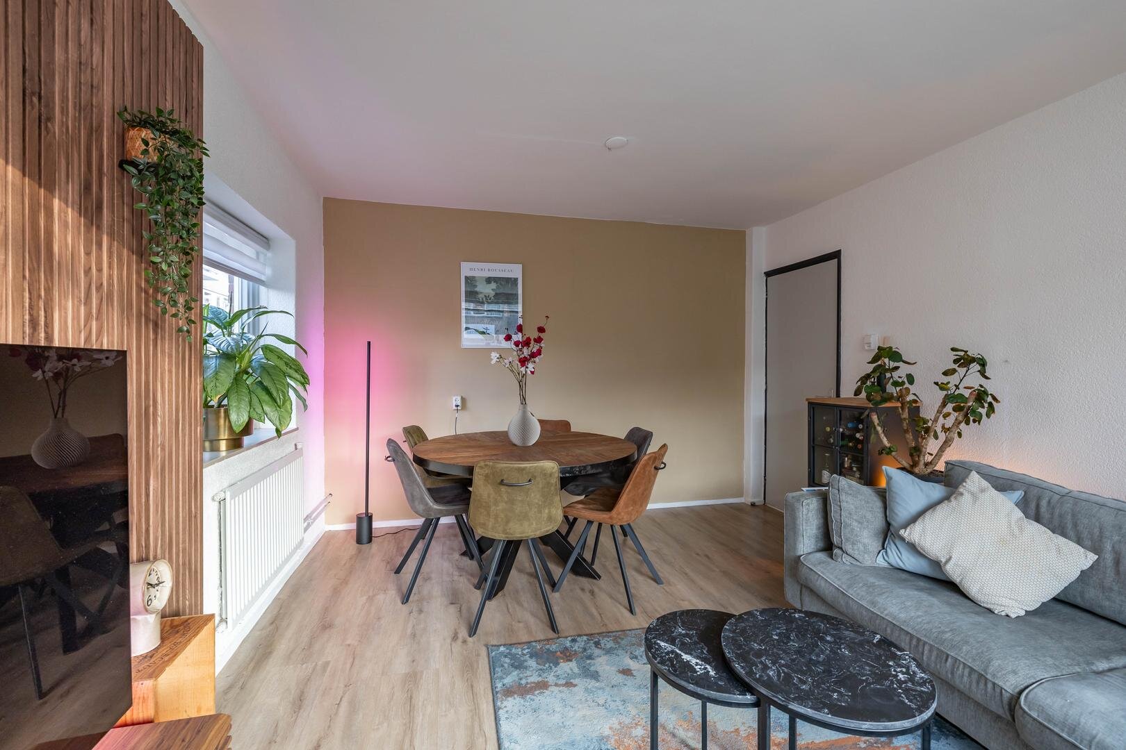 Door de unieke hoekligging is er een zijraam waardoor je geniet van veel lichtinval. Hier is ook plaats voor een gezellige eethoek, waar ook een grotere tafel makkelijk geplaatst kan worden.