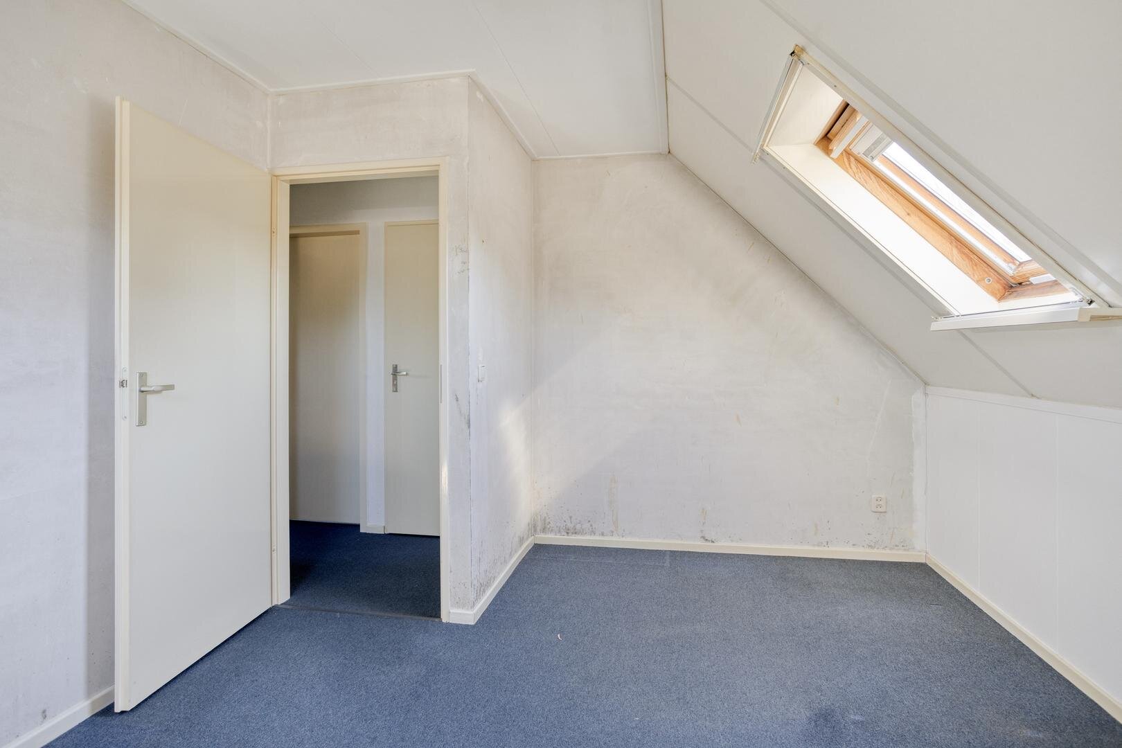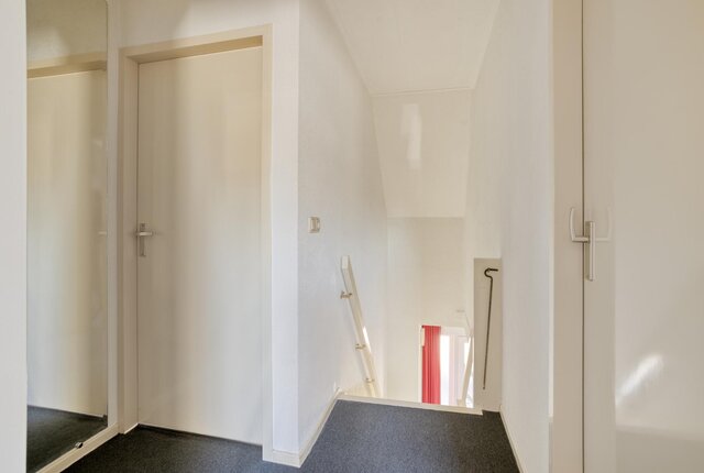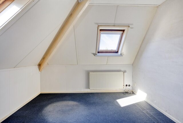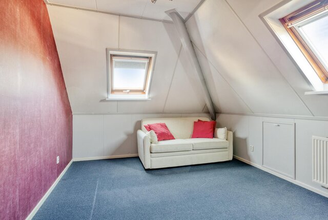 Via een vlizotrap is de zolder met voldoende bergruimte te bereiken.