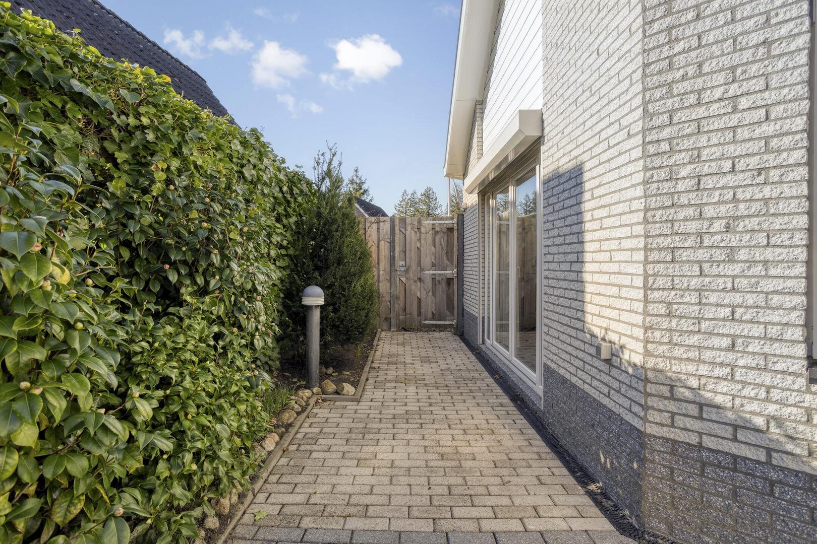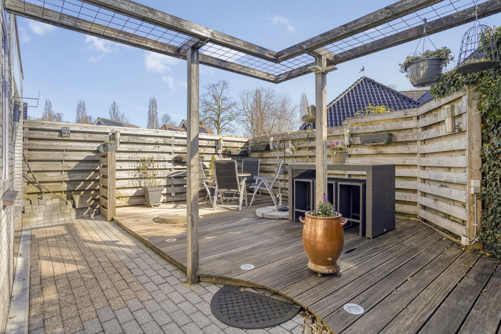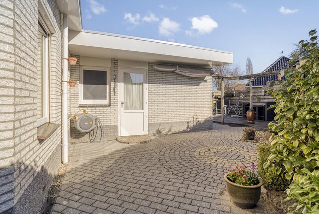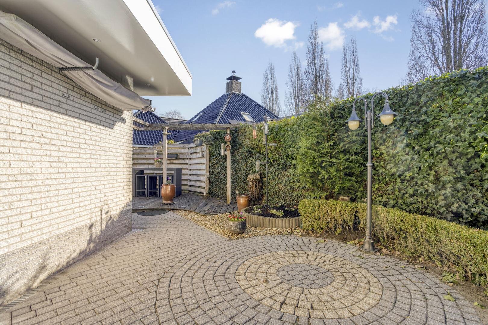 Het huis heeft verzorgde tuinen aan de voor-, zij- en achterkant, evenals een zonneterras. De grootste tuin bevindt zich aan de achterzijde en is gelegen op het zuidoosten. De tuinen worden goed onderhouden en zijn bereikbaar via een achterom.