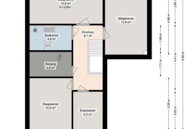 De woning biedt voldoende ruimte met vier slaapkamers op de eerste verdieping. Ook is er een badkamer aanwezig met toilet, douche en wastafel. Daarnaast is er nog een berging met opstelling voor de HR combiketel en wasruimte.