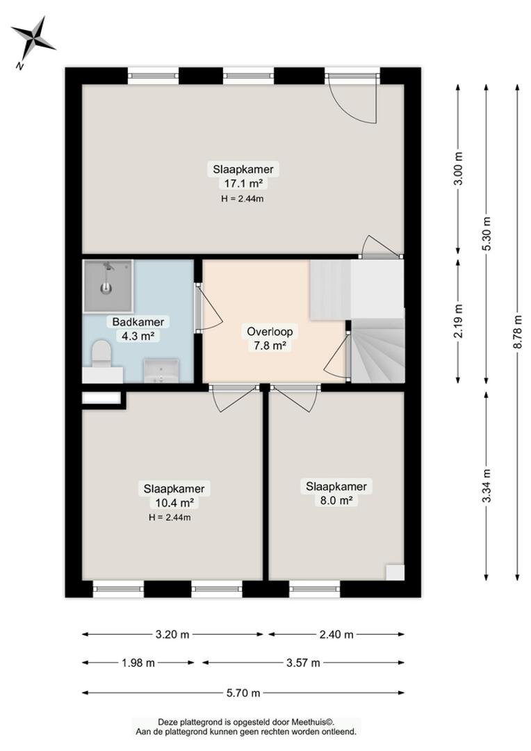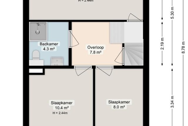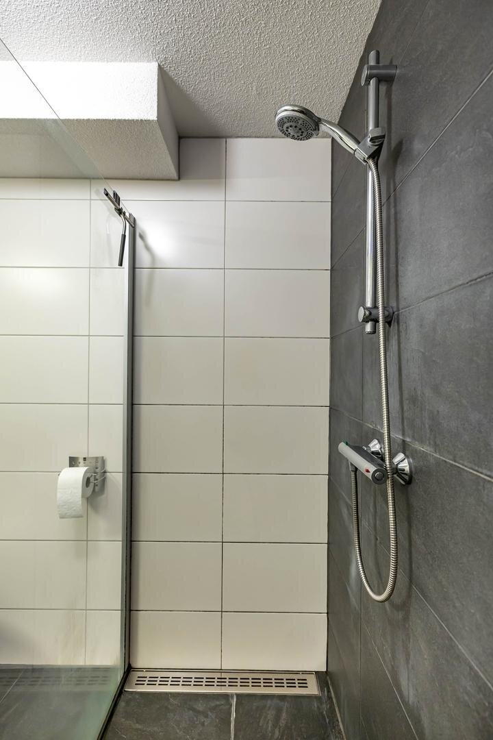 Deze speelse etage biedt een verrassende indeling. De overloop is ruim en er is bijvoorbeeld plaats voor een extra kast. De twee slaapkamers zijn ruim en meten ca. 10,4 en 8 m². De badkamer is keurig betegeld en voorzien van een handige en ruime douche met mooie glazen douchewand. Ook is er een tweede toilet en een compleet wastafelmeubel met brede lades.