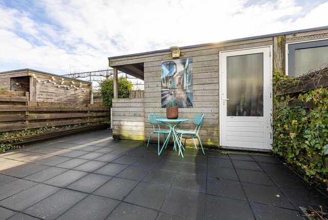De diepe tuin is gelegen op het zonnige Zuidoosten. Er is een fraaie serre geplaatst met mooie glazen deuren, waardoor je het hele jaar door van het buitenleven kunt genieten. Je hebt geen directe achterburen, waardoor je in de achtertuin veel privacy ervaart. De tuin is ook bereikbaar achterom en er is een handige en ruime berging aanwezig.
